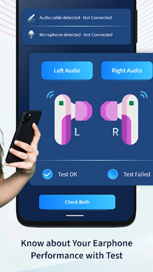 In the Headphone test, you can test whether your headphone is working properly or not. In this, you can also test the left and right headphones individually.