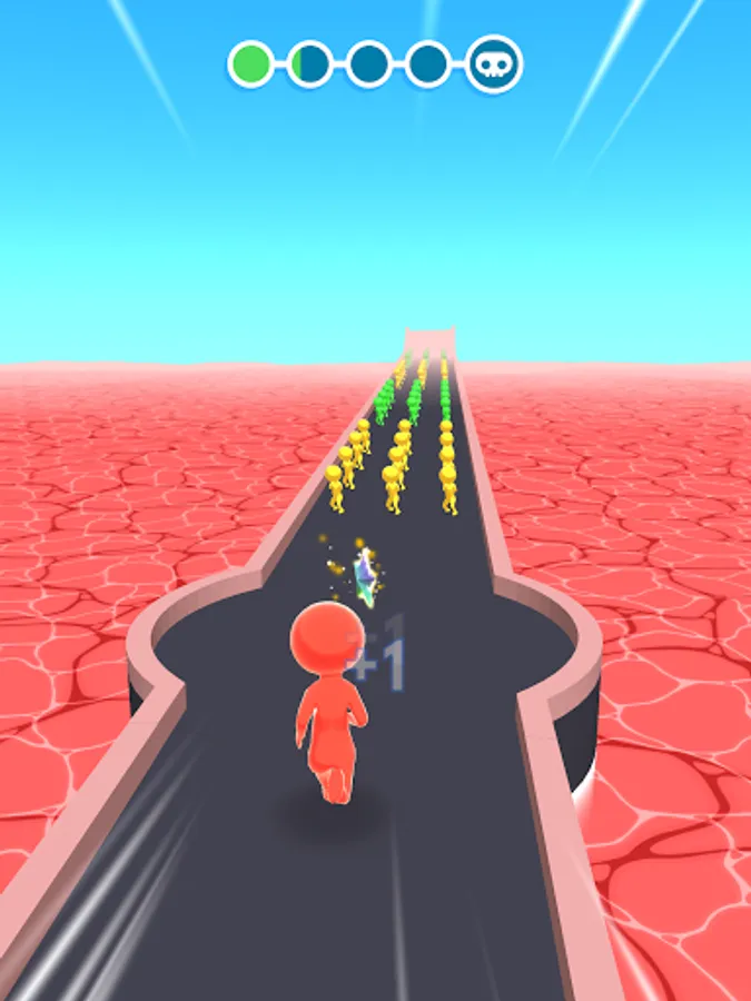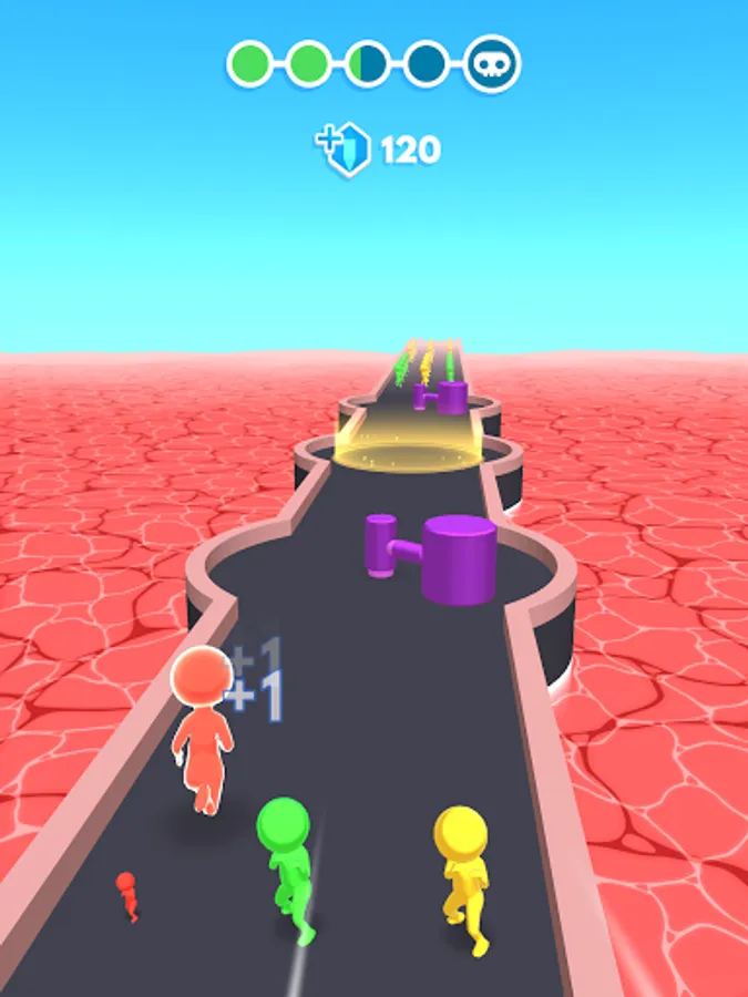 If you merge with crowd of same color groups, it adds more strength and power to your character, but you must always remember about other groups of crowd with different color: if the color of other group is different than yours then it will decrease size of your character, beware of it. Get an unlimited amount of power & size until you reach end of the level. Crush your opponents in the ultimate battle and capture the fortress in fun race 3d game!