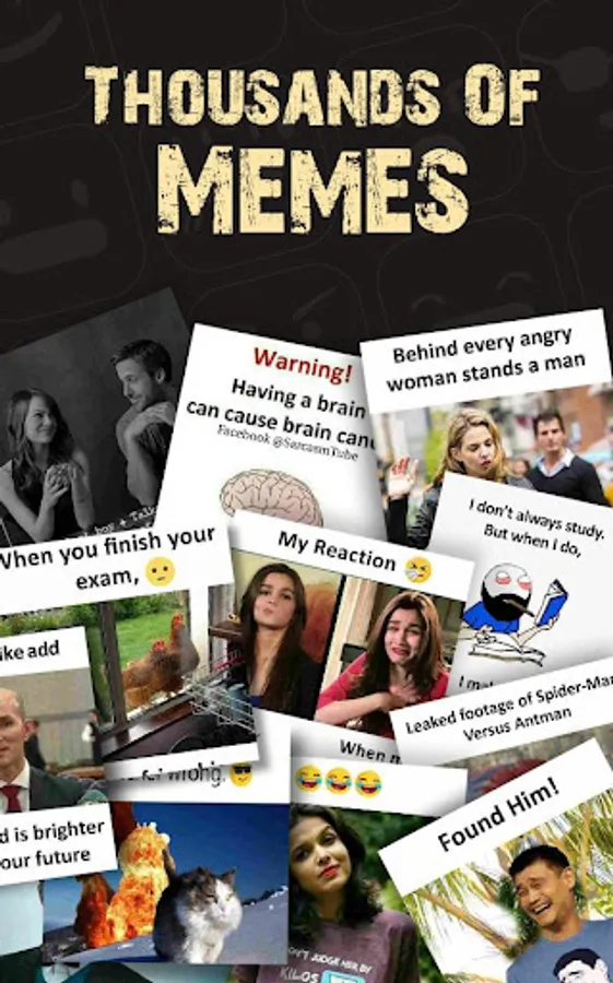You can spend hours after hours going through our categorized collection of meme, sarcastic jokes and not to mention the latest section where you get all the latest meme. You can mark you favorite Memes and read them later and show your friends and family.