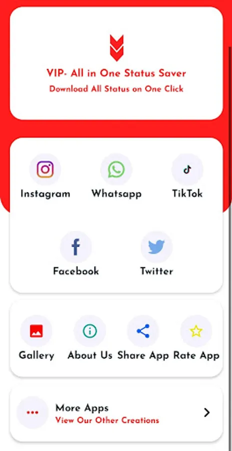 VIP - All In One Status Saver is an Android All Social Media Video and Image Downloader App. You can Save Likee, Whatsapp, Facebook, TikTok, Twitter and Instagram Videos and Images with All In One Status Saver. You can Download Tiktok Video Without Watermark. You can easily share them from the App. Many More Features are Available in the App,
