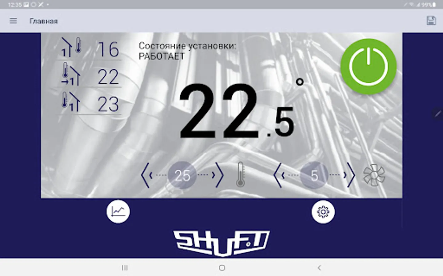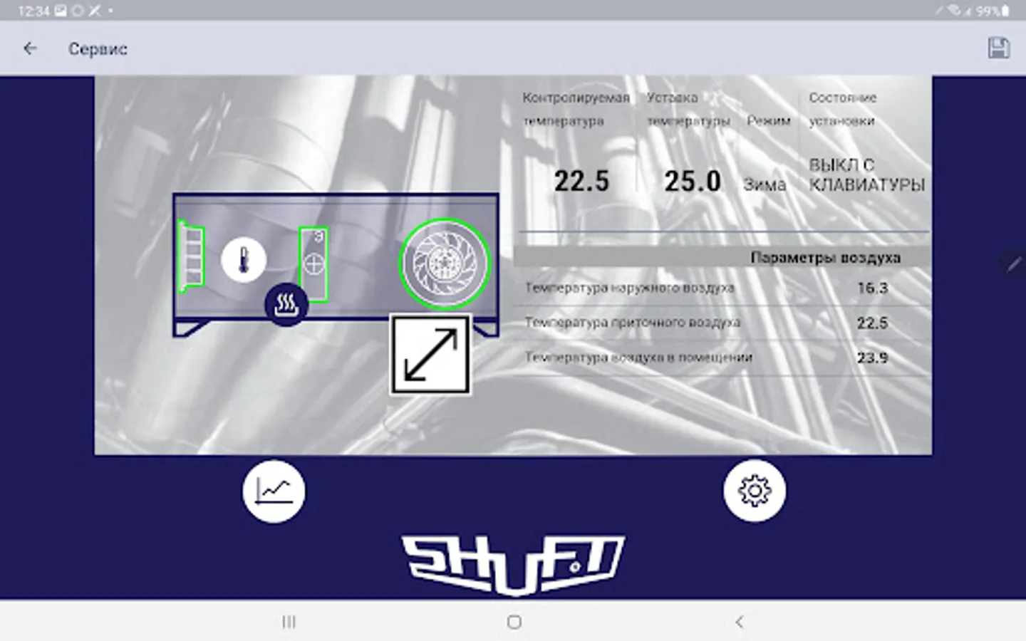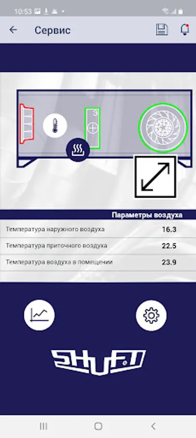 Shuft Application interacts to the new generation AHU controllers and makes possible to control room air parameters to make it comfortable. This is the advanced level of the industrial and residential AHU control. Unit parameters accessed securely via the Application. Different access levels available - User, Service and Manufacturer for the advanced unit setup during production.