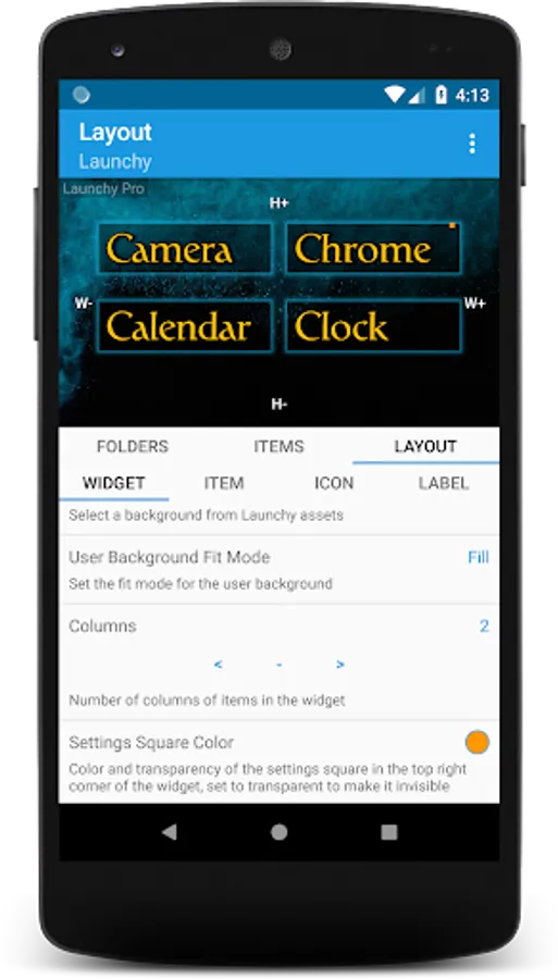 5 - In the edit screen, add your favorite items to the Launchy. Use the "Configure" screen to customize it.