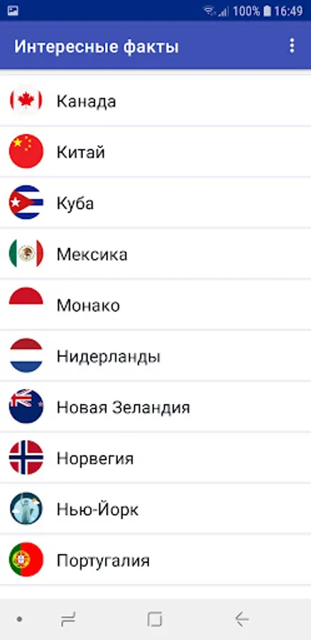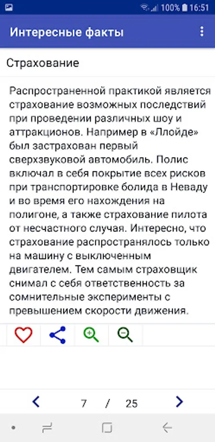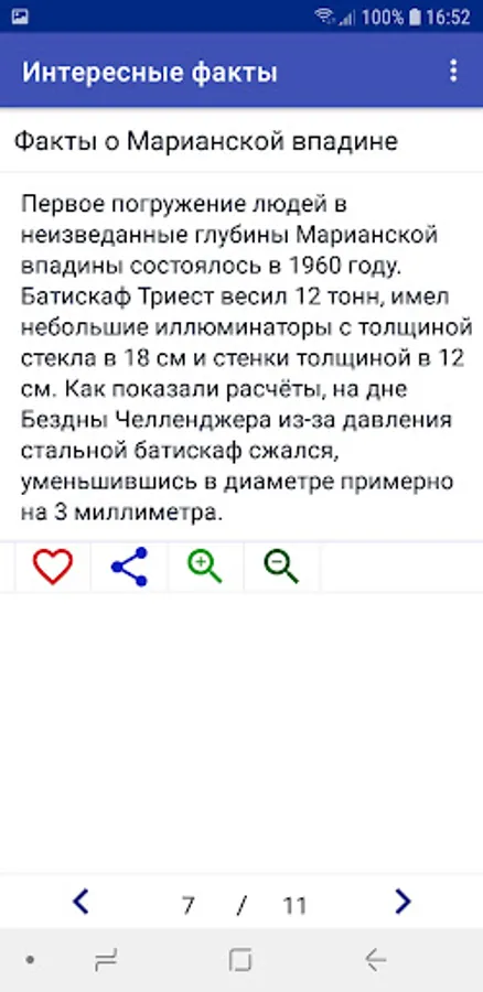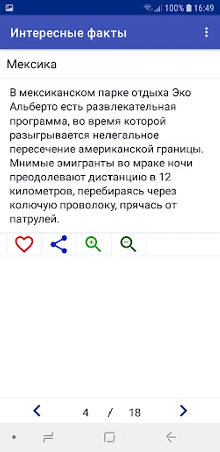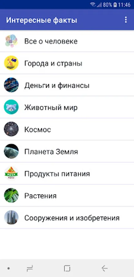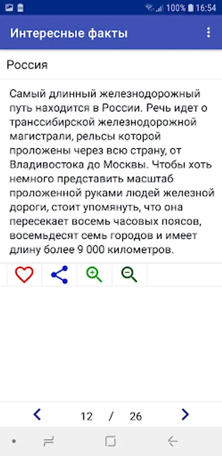 The application contains a large number of facts on various topics. Do you want to know which country is the largest in the world? Are you wondering what is in the depths of space? And what moments in the legislation of different states cause a smile? You will find all this and much more in the Interesting Facts app.