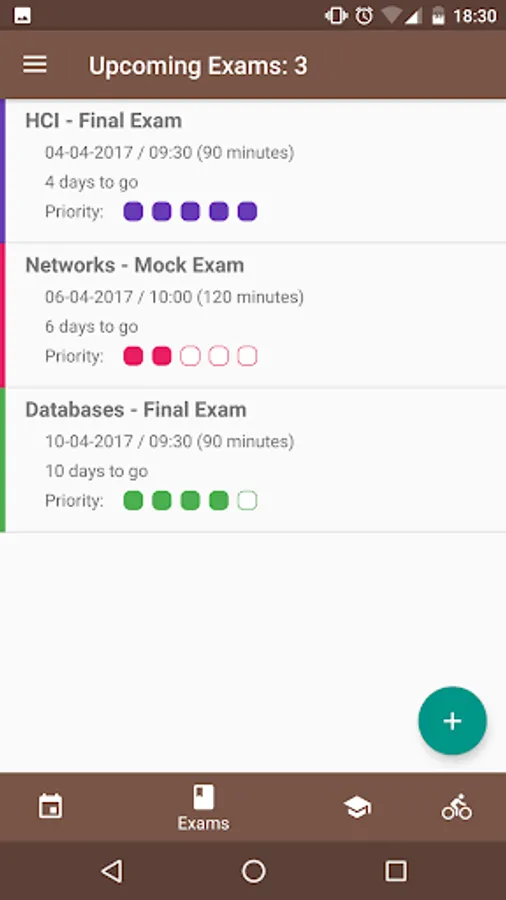 - Add Exams: Add, edit, and delete exams, all with options for varying levels of priority and course content size, so that revision can be generated accordingly