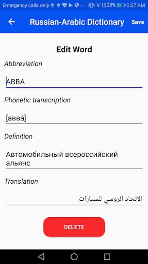 The dictionary contains more than 1250 Russian political and economic abbreviations with a translation of their definition into Arabic.