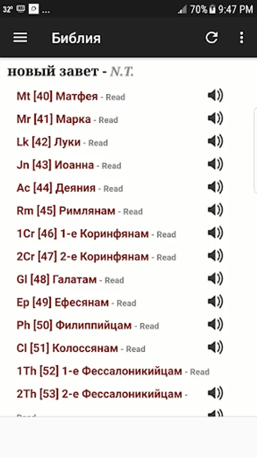 Russian Bible - In this Bible Synodal Translation application you will find King James the books of the Old and New Testaments. It comes complete with text and an audio version in your language, Russian. You can read the Bible in text or if you do not have time to read only play audio and listen! The user interface is designed for easy navigation capabilities. Very easy access to all chapters of the Bible in Russian. Try it now, it is absolutely free! Learn the word of God every day and get closer to God using the Russian Bible application .
