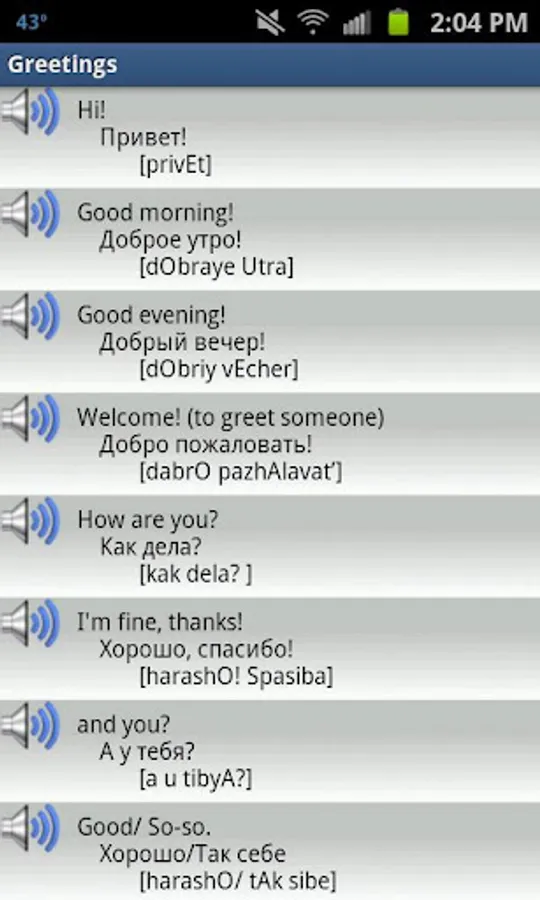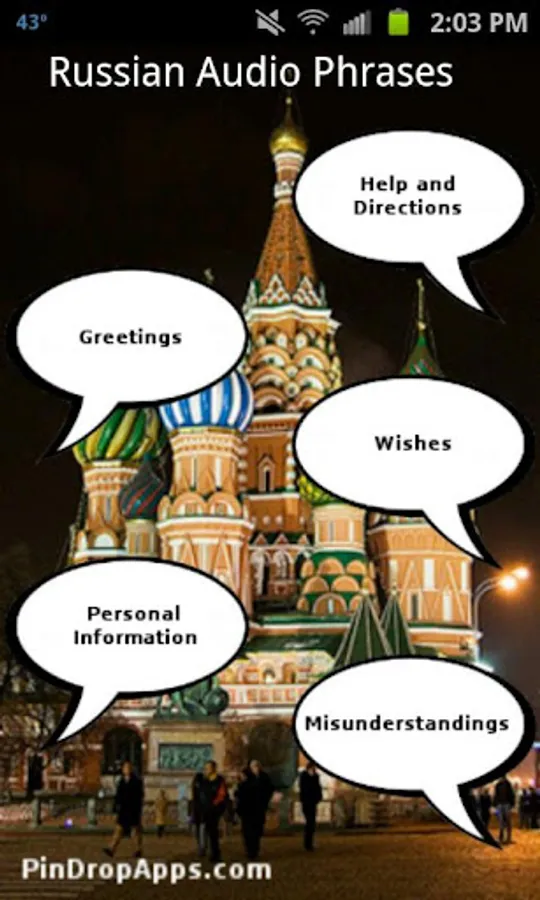 Learning Russian is as easy as listening to common phrases. Included are dozens of phrases in 5 categories. All the phrases are pronounced by a native Russian speaker.