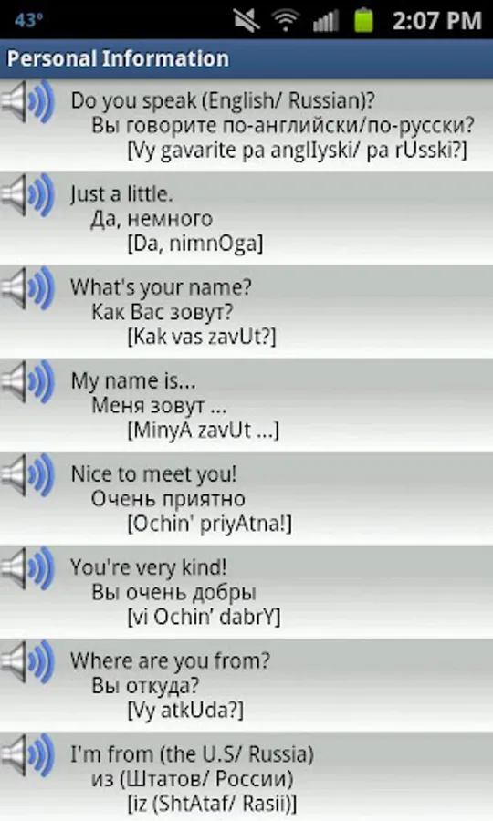 Use phrases in restaurants,any square,any conversion,business,applying for a visa. Includes an alphabet reference and English converter. Any family will be impressed. This Russian tool trains vocabulary to register to communicate in any forum. This app does not include slang. Friends will give credit to those who take interest in those who take up learning another language, if only to let off steam. Use these phrases to thread the needle of a new hobby, quiz yourself and interface with others in any form. Use these phrases in bars, question and answer situations, or planes with little effort. This easy course will encourage you to accept another culture and encourage communication. This audio version has the relevant topic, type, and capability for your learning needs. Memorizing just a few phrases will make a difference.