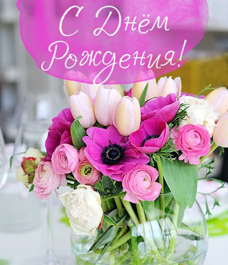 Happy birthday with flowers beautiful cards and animated gifs (gifs). Choose and download an elegant postcard or animation for the birthday of a friend, loved one and loved one for free! Congratulations to the birthday boy with an elegant card, adding a few warm words of your choice. Pay attention and show your friends that you always remember them, especially if they are not celebrating a vacation with you right now.
