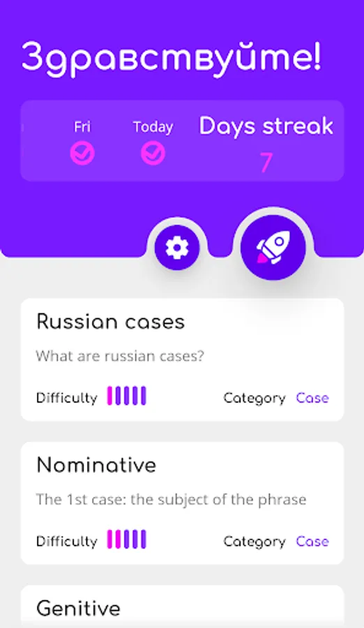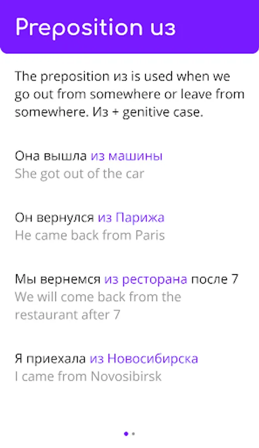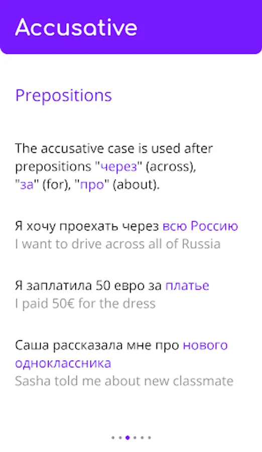 In this app you'll find lessons on the basics of Russian grammar, including declensions, prepositions, noun endings, adjectives and pronouns, etc... 😃