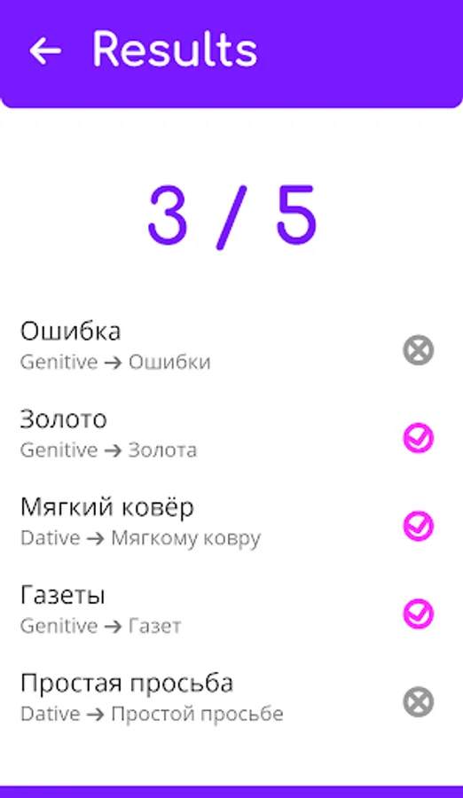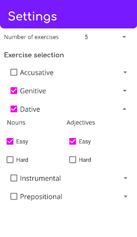 - 500+ exercises to practice declensions