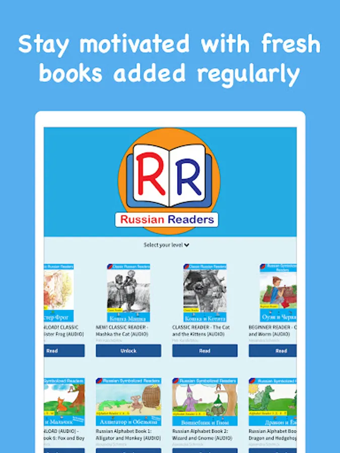 Learn Russian with stories read by native Russian speakers and professional storytellers! New books are added regularly, so you’ll always have fresh material to enjoy.