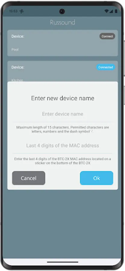 The Russound BTC-2X Naming App is required to update the friendly name of the Russound BTC-2X Bluetooth transceiver.
