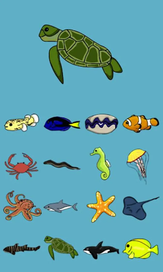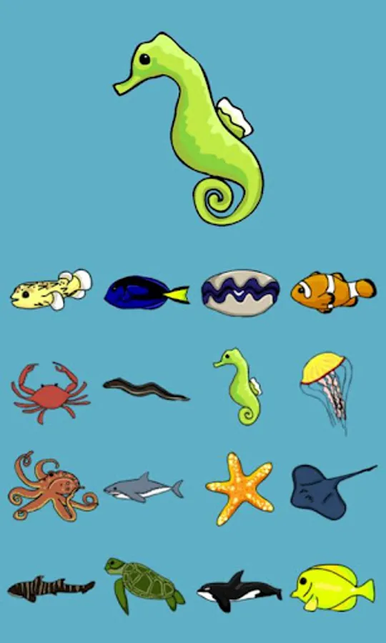 This is a fun game to entertain your toddler and teach them a few new fish words. Seahorse, blowfish, turtle, stingray, clam, eel, octopus, and more! Has a simple interface ideal for young kids and toddlers.