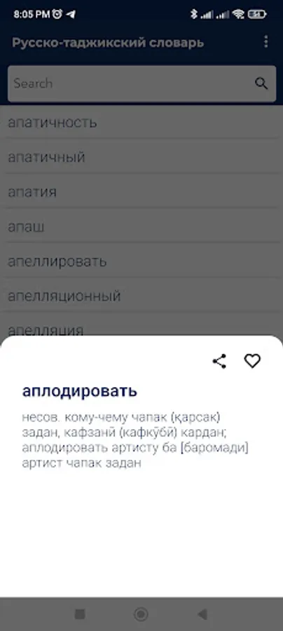 Оцените наше приложение «Русско-таджикский словарь» и поделитесь им с друзьями, которые также изучают русский или таджикский языки!