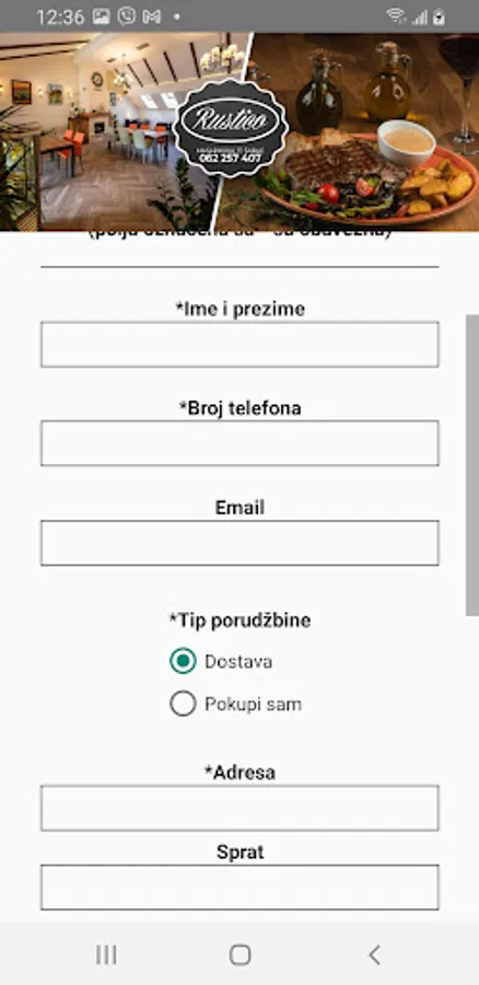Order food and drinks from a Rustico restaurant for a delivery on desired address or pickup in restaurant.