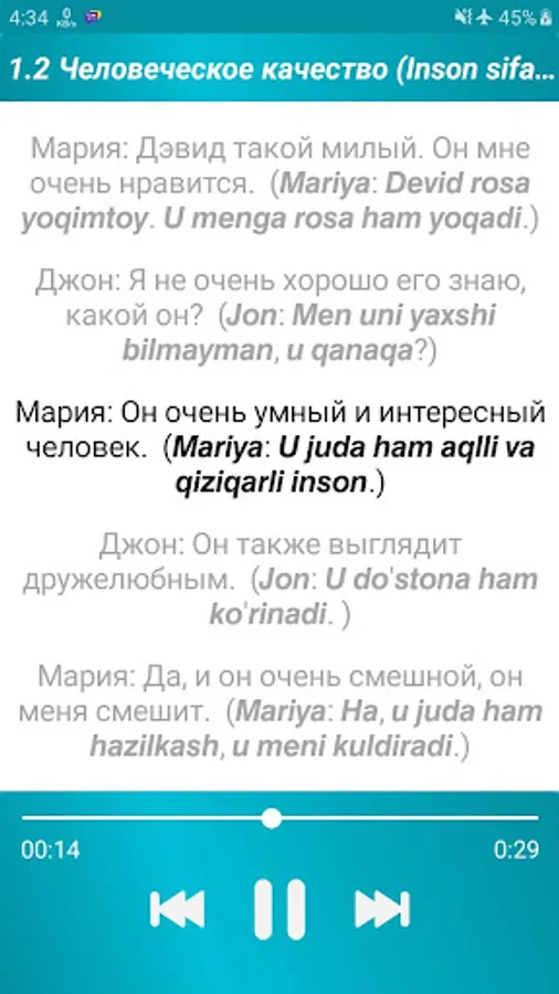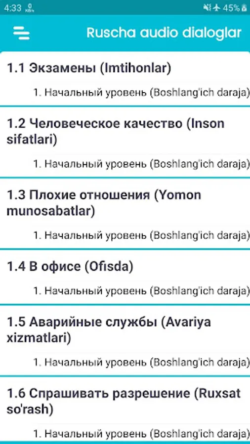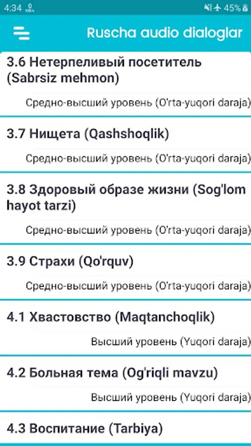 Dialogues in Russian with audio for beginners and advanced. Audio Russian language lessons in 4 levels. Russian-Uzbek translator dictionary with audio dialogs.