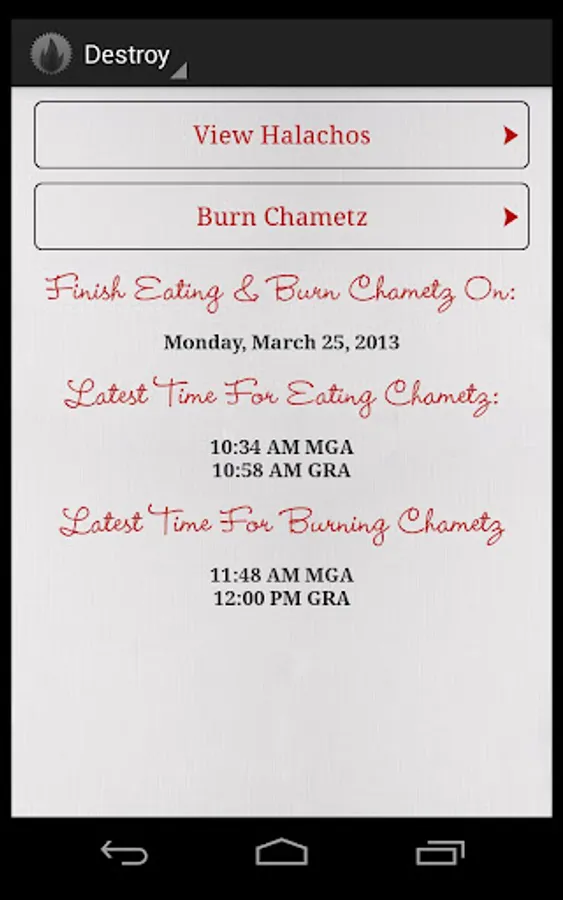 The No Chametz app helps Jews go through the process of searching, cleaning, destroying and selling their chametz prior to the Passover holiday.