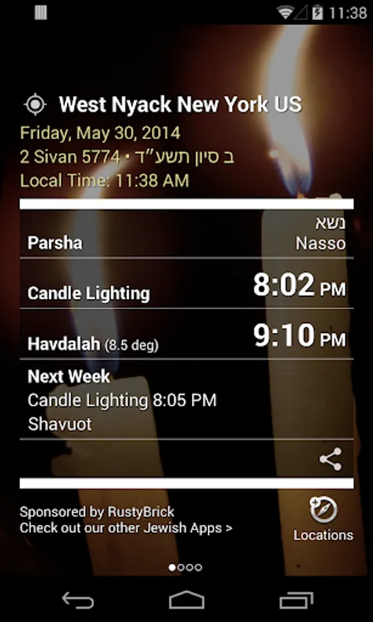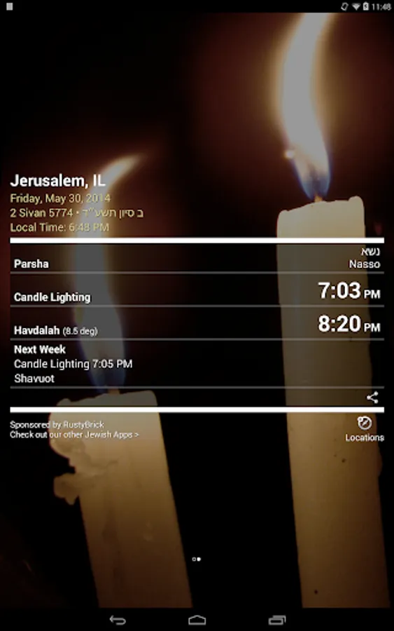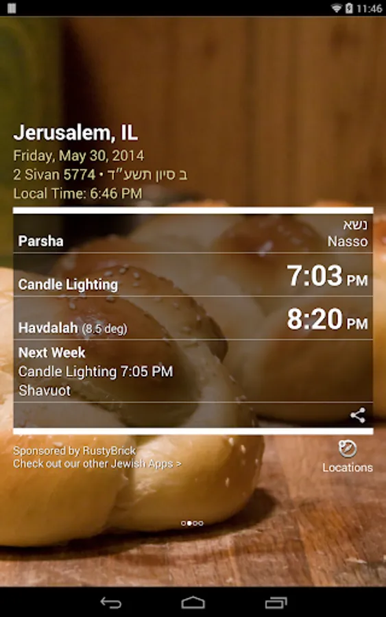 Enjoy this free Jewish application. The application requires an internet connection only when you use the search feature, to locate a location. Otherwise, it can run without an internet connection.