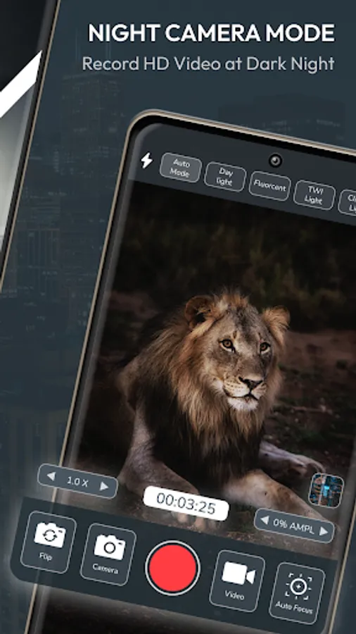 The Night Camera Mode Photo Video application runs very smoothly and the switching between the front and back camera works without any delays. During the photo taking and video recording, you can choose from different effects like Auto Mode, daylight, fluorcent, TWI Light, cloudy day and change camera sensitivity to achieve the best camera shot.📸