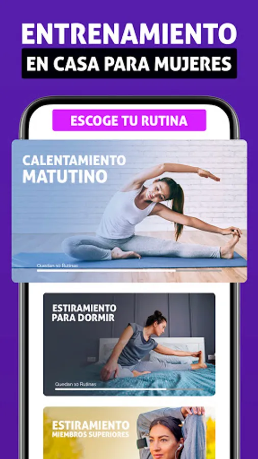 In RutinApp exercises at home for women : you will be able to perform daily routines to lose weight, workouts before sleeping and to get up with energy, Special exercises to increase flexibility in the body, Challenges 15 and 30 days with animated live exercises, Tone your body, Soothe pain with neck and shoulder stretches, pain in the lumbar areas, pain in the knees, burn belly fat, tone the buttocks, get slim legs, reduce the waist and get fit. Follow the routines and you will see the excellent results.