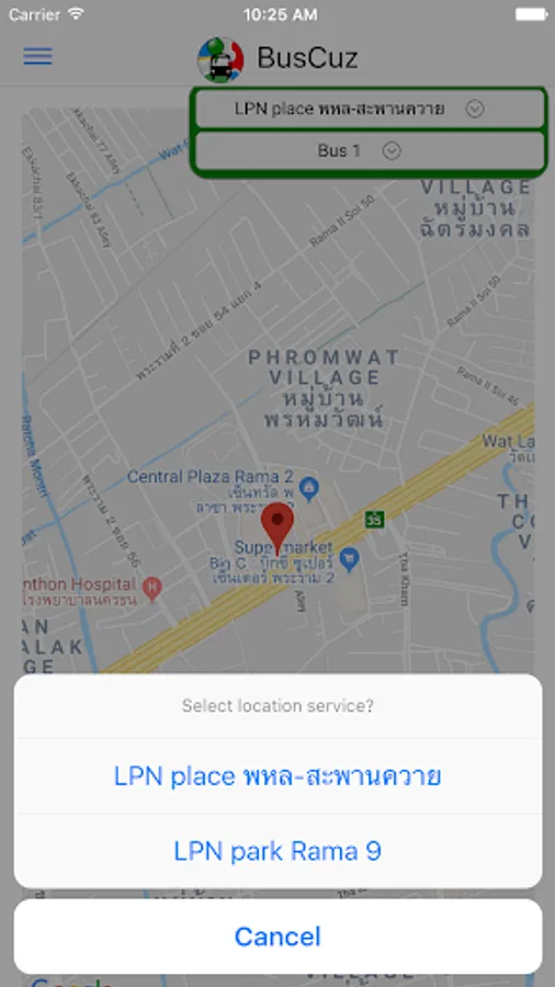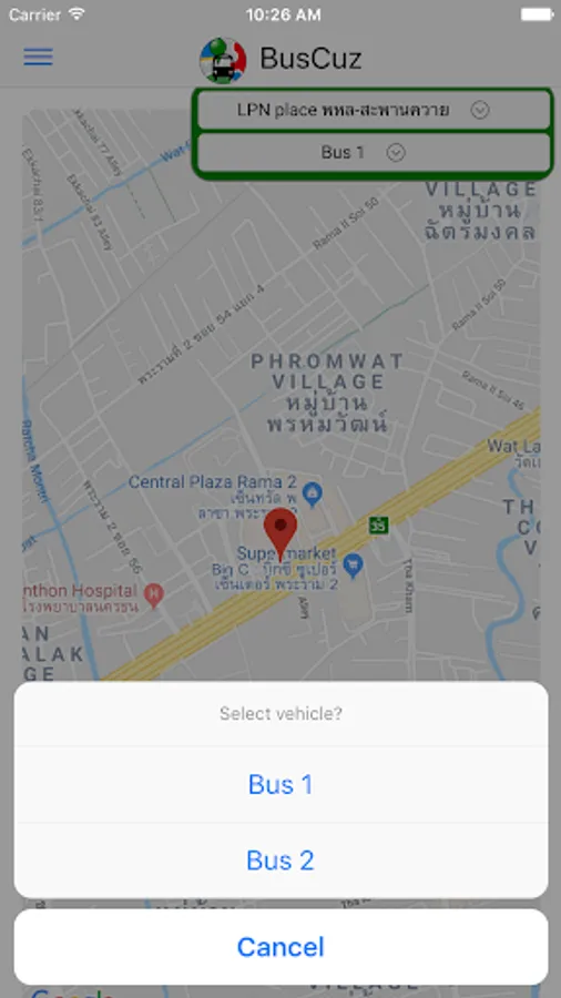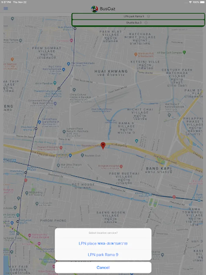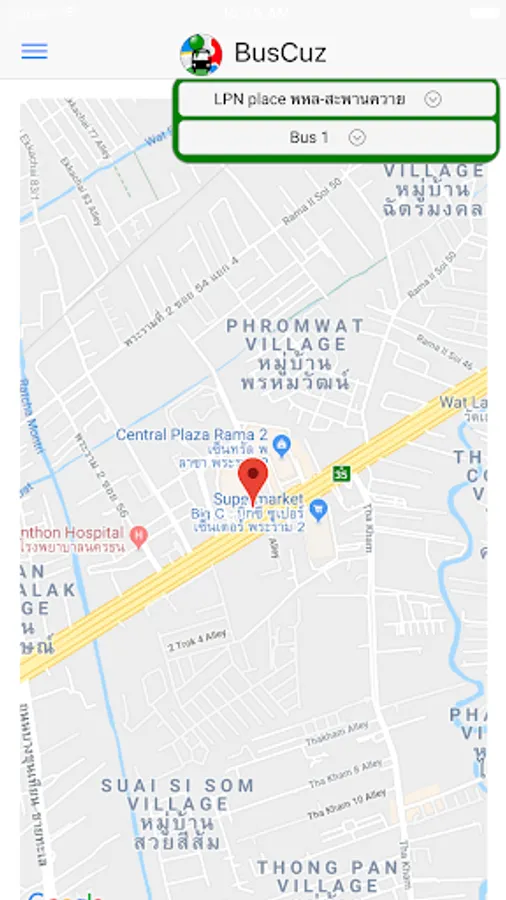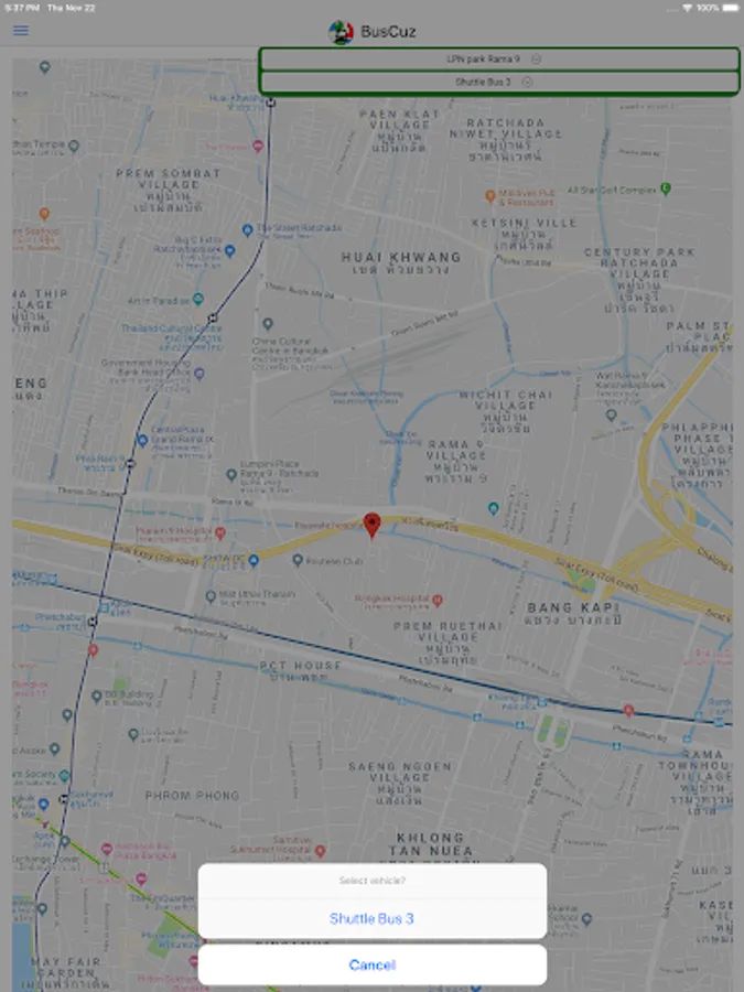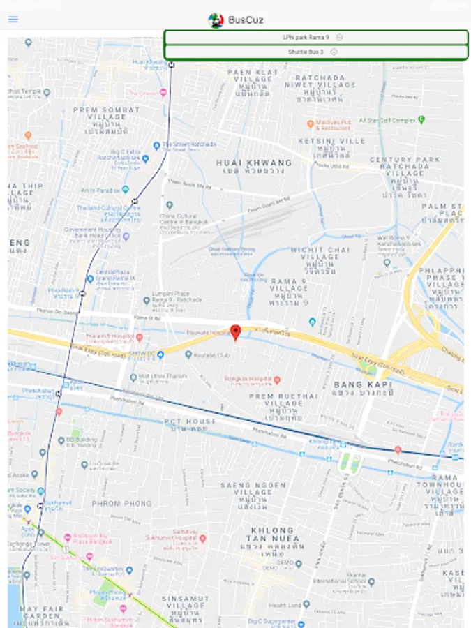 BusCuz will display vehicle location on the map, such as a shuttle bus, condo shuttle, shuttle bus. Or department store in Bangkok