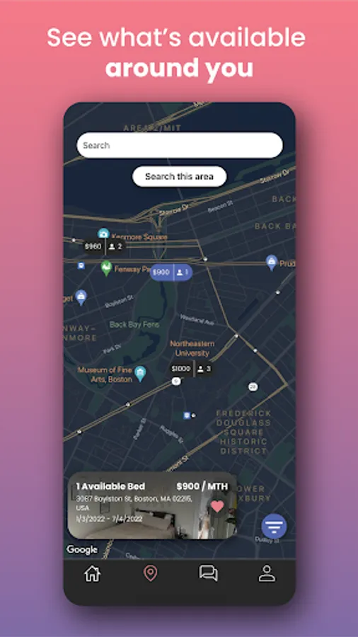- Put the surroundings of your potential home in perspective by viewing listings on the map tab