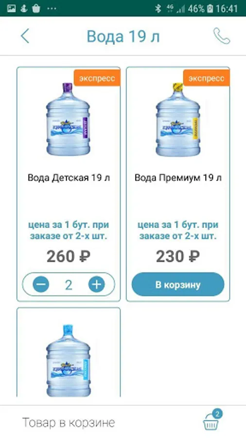 In our application, you can also place an order for equipment for bottling water (floor and table coolers, mechanical and electric pumps), accessories for its storage (racks and coasters) and even such goods as tea, coffee, sweets, drinks.