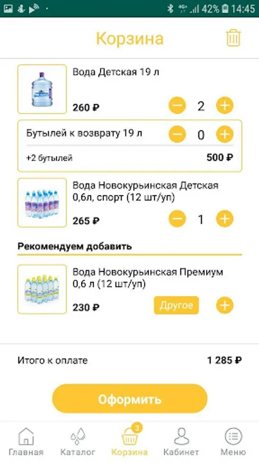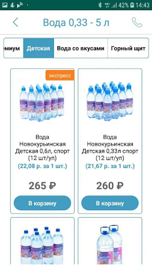 Using the application, you can order tasty and healthy drinking water of the trademarks Novokuryinskaya Detskaya, Novokuryinskaya Premium, Novokuryinskaya Classic, natural drinking water Mountain Shield and Novokuryinskaya with the taste of berries and fruits.