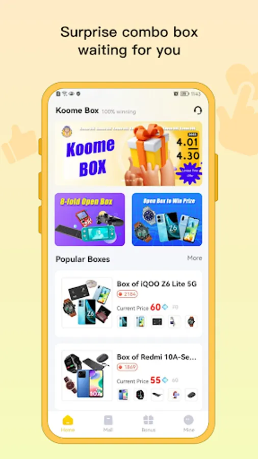 You must win the Koome Box, and a lot of prizes are waiting for you to open the box!