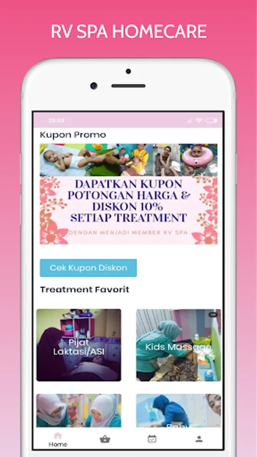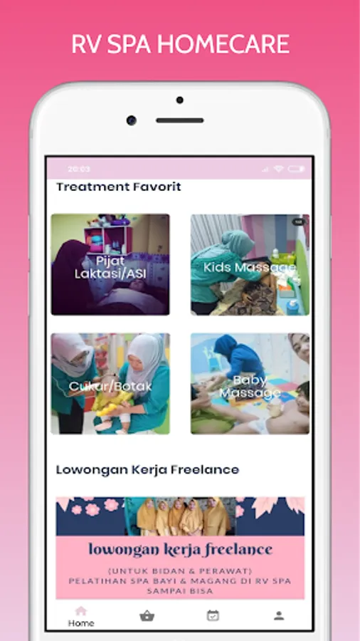 Is a Spa Waiter for babies, children, pregnant women and childbirth in your home without having to leave the house, simply through the "RV Spa HOMECARE" application you can order homecare services directly from your smartphone.