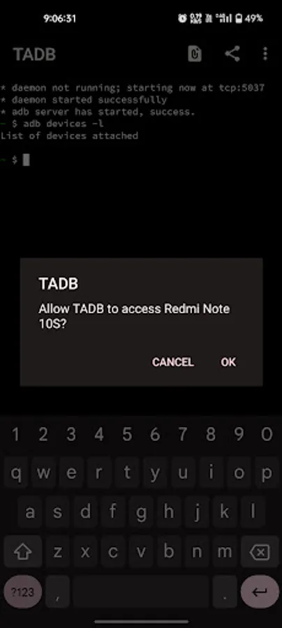 3.) Allow app to access USB device and make sure target device authorizes USB debugging.