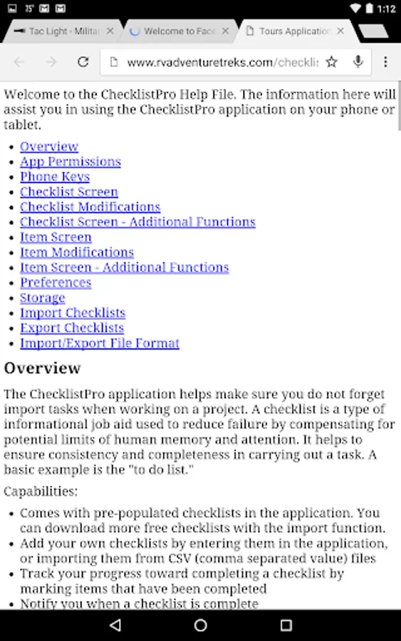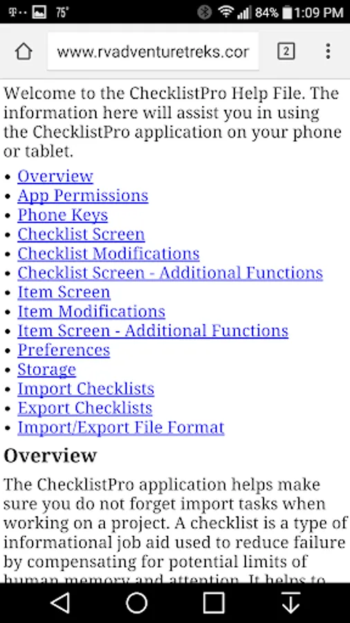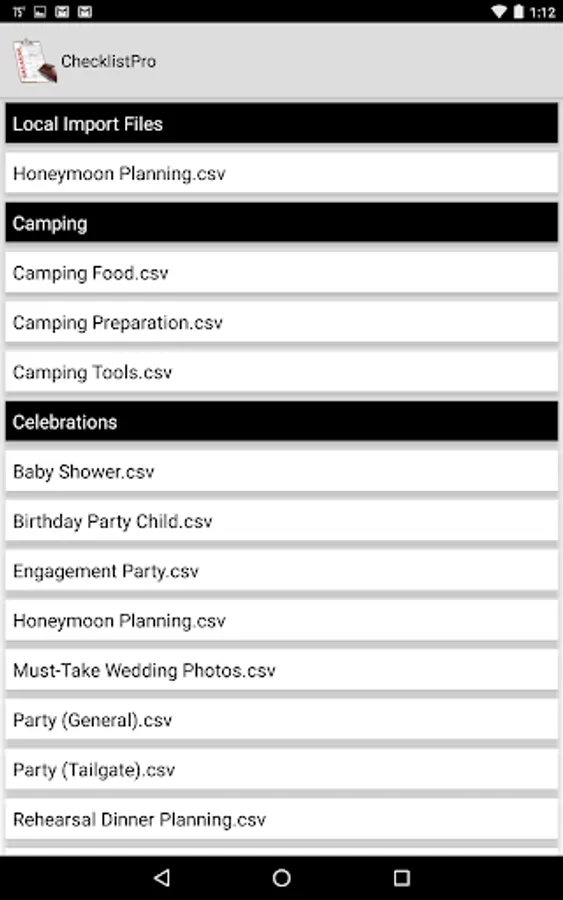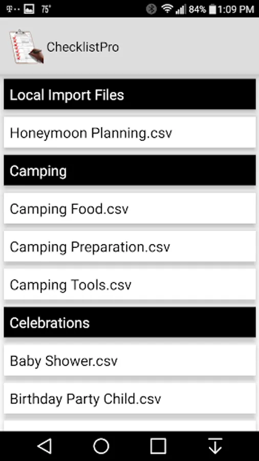 - You can add your own checklists by entering them on the phone, or importing them from CSV (comma separated value) files
