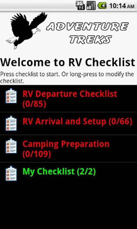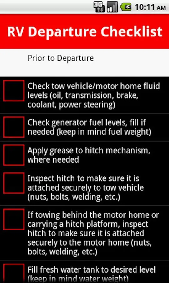 The RV Checklist application is meant to be used by anyone with an RV. The RV Checklist application will enhance your RV experience by: