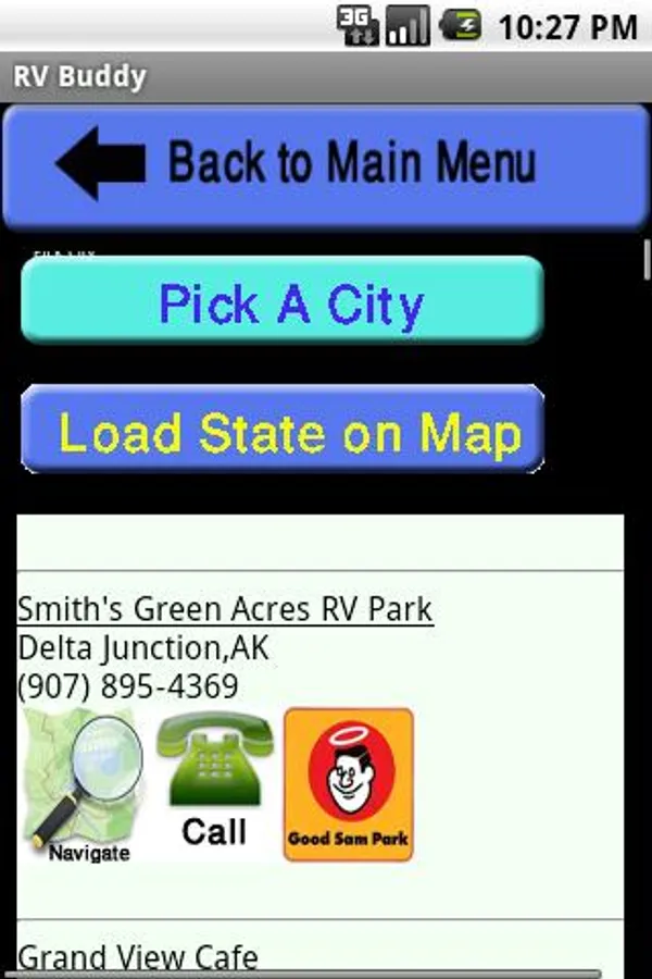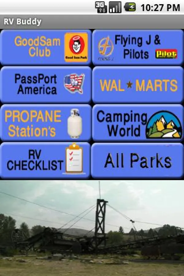 This application is great for part-time RV'ers and a must have for a full timer Rv'er like myself.It will find any Good Sam RV Park and cross reference to see if it also a "Passport America RV Park" and the same the other way around also shows the passport notes and restrictions.Also finds any non membership Parks "State Parks","National Forest","Public Parks", "private Parks" and "Tourist Attractions". It show if there are any Wal-mart it that city it also has a option to Navigate to the campsite without leaving the app plus has traffic view to see the current traffic on that street making picking a route alot easier.You can also uses the satellite view and see the layout and the way the campsite looks before going there.With State map view you can see all the parks in that state at once. The Wal-mart function will tell you if that Wal-mart allows overnight camping or not.It will also locate any Pilot/FlyingJ and tell you the exits number or you can uses the Navigate function built in to the app.It also has a Camping World locator and a propane station's locator that can handle large RV's. Lastly it has a great built in RV Checklist that you can add and delete your own items to.