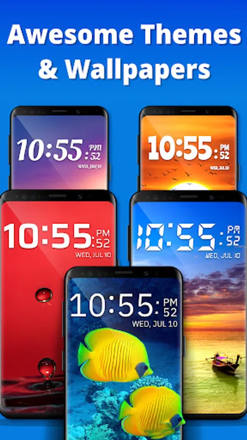 ✔ Set a custom theme or photo as your clock background.