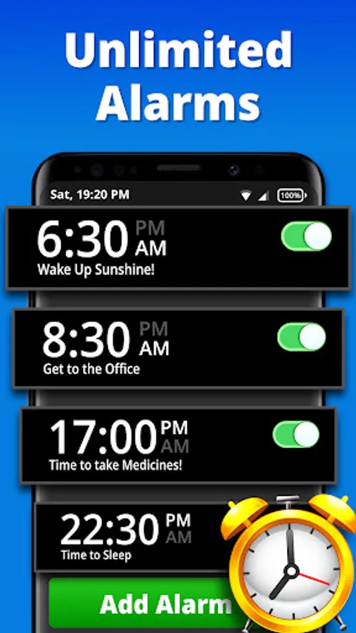 Alarm Clock app is a smart and powerful tool that can help even the heavy sleepers get up in the morning. 🌅 Create multiple alarms, each with loud ring tone sounds and alerts, then customize each one with features that help you wake up on time. 🕖