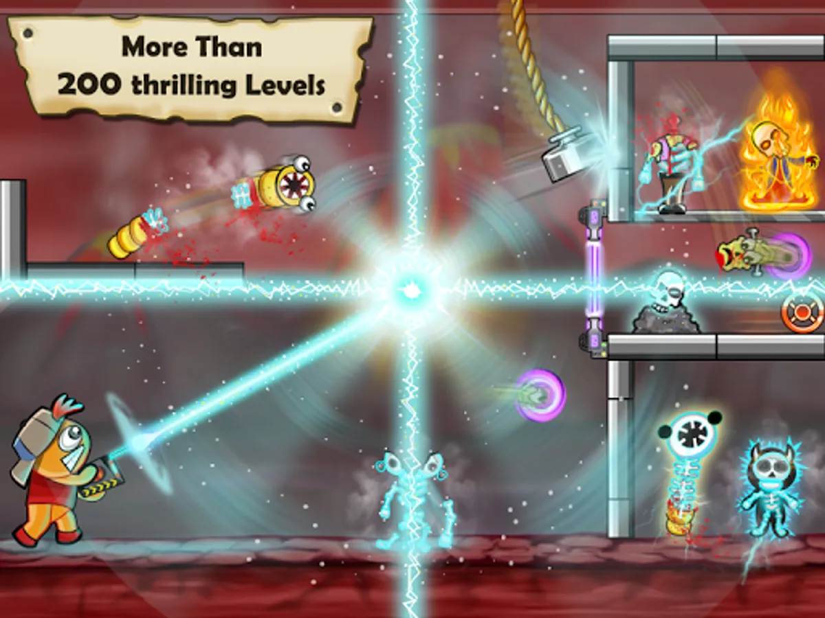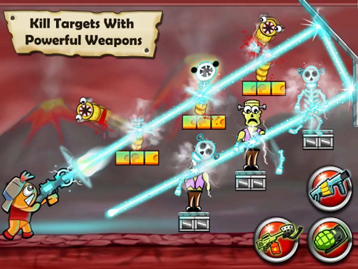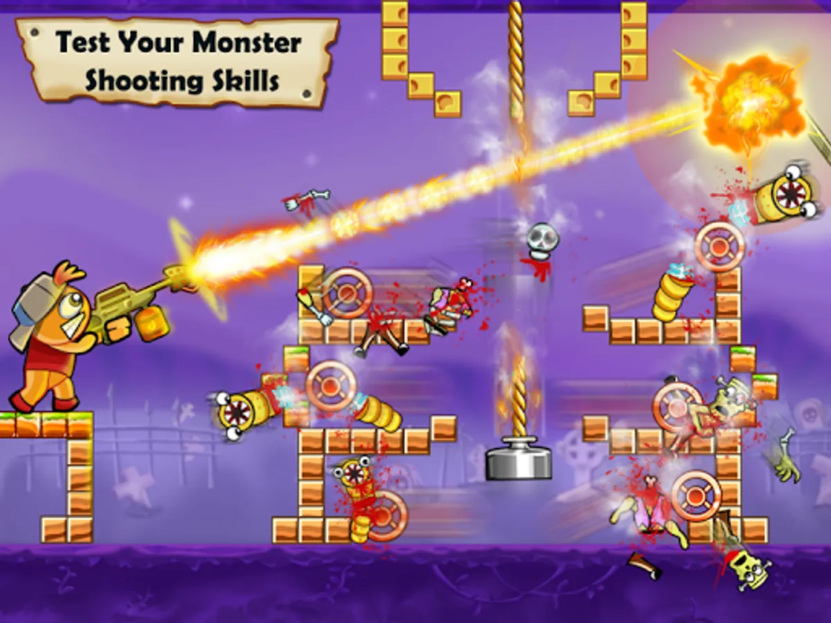 Bloody Monsters, is a super addicting strategy shooting game that will keep you entertained for hours. If you love physics game, then you love the way the bullet bounces.