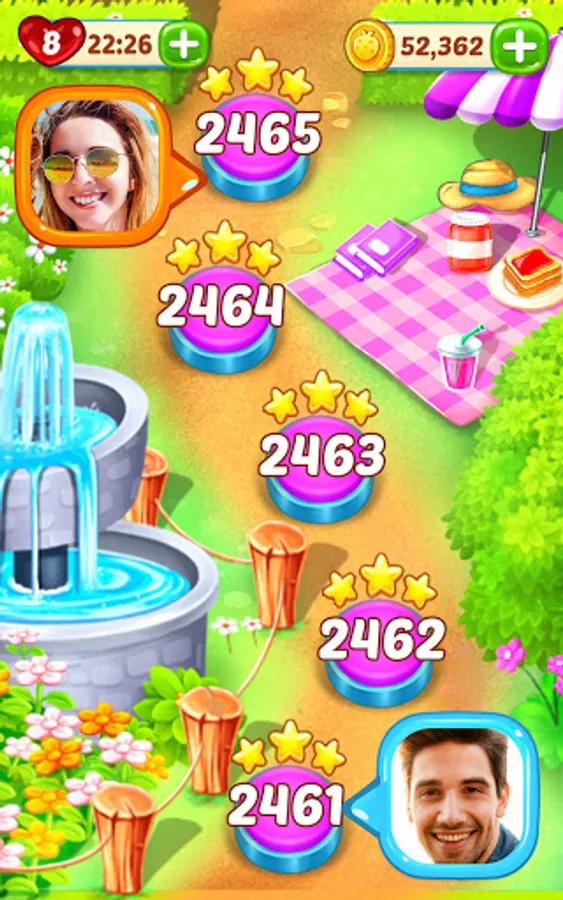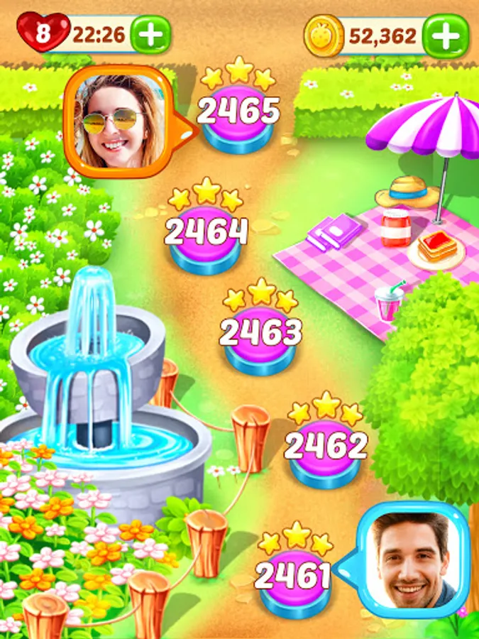 Gummy Paradise, is the perfect way to spend some ‘me time’ and save a kingdom from candy chaos! Go on a sugary sweet adventure in a world made out of gummies as you connect and match your way to victory.