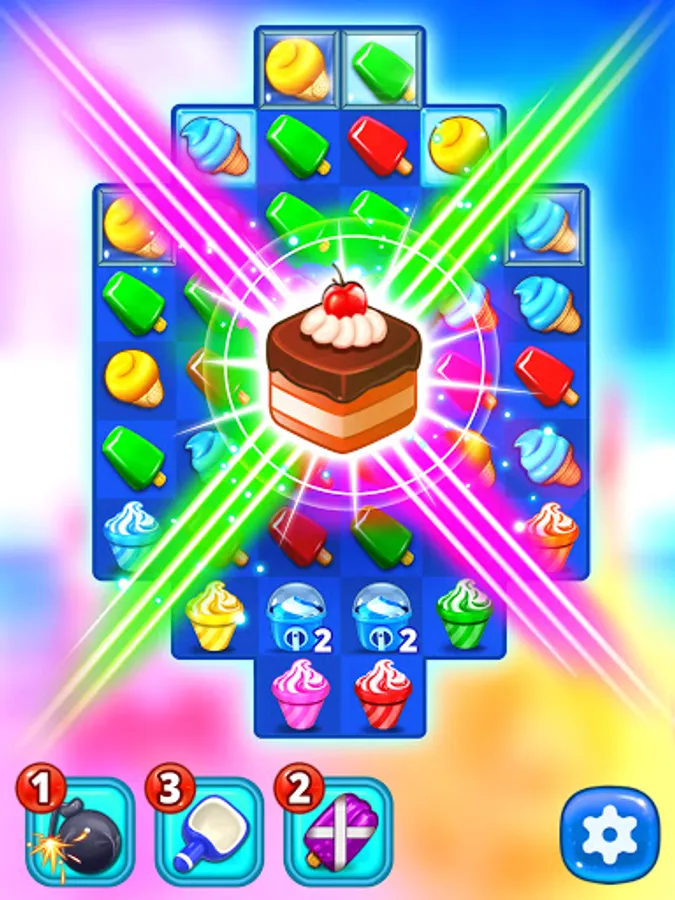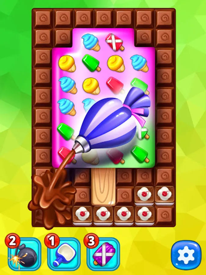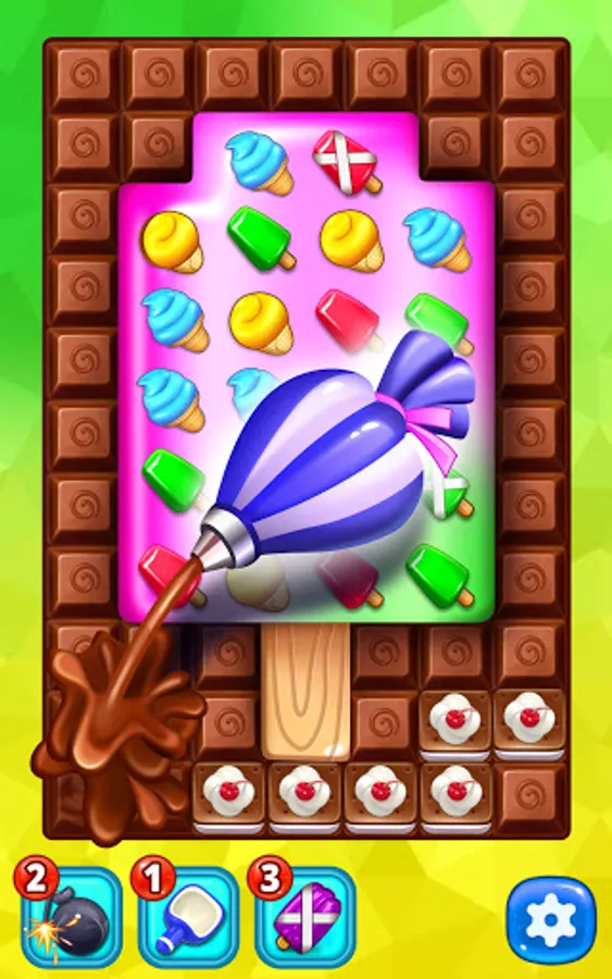 - Solve match-3 puzzles to remove cookies, ice cream, and candy from the screen.