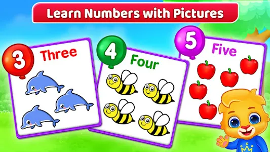 Learn to Count – Several types of objects will be displayed on the screen. Children count the objects and tap on each one to learn numbers individually.