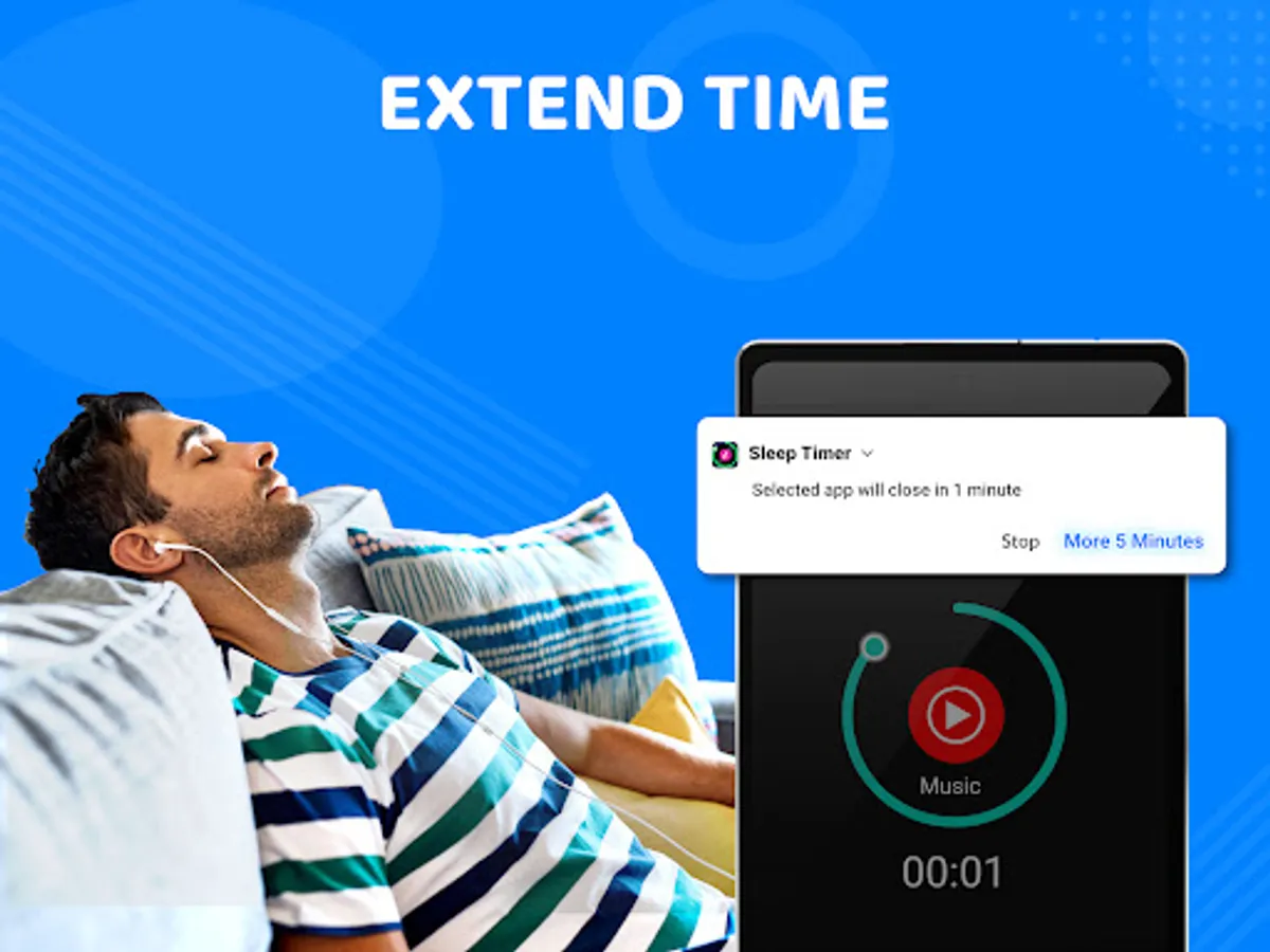 Sleep Timer lets you play music, sleep songs, and other relaxing sounds as you drift off to sleep. You can leave your phone or tablet alone knowing that the app will automatically turn the screen off and stop the music after a period of time, allowing you to take a nap without worrying that you'll wake up to a dead battery.