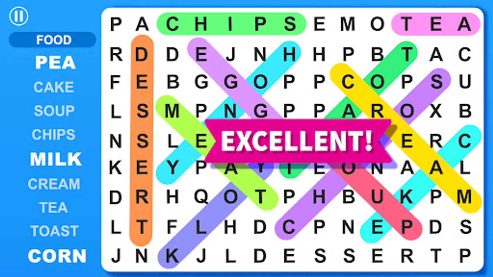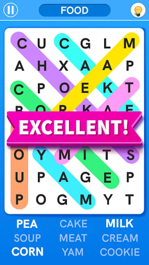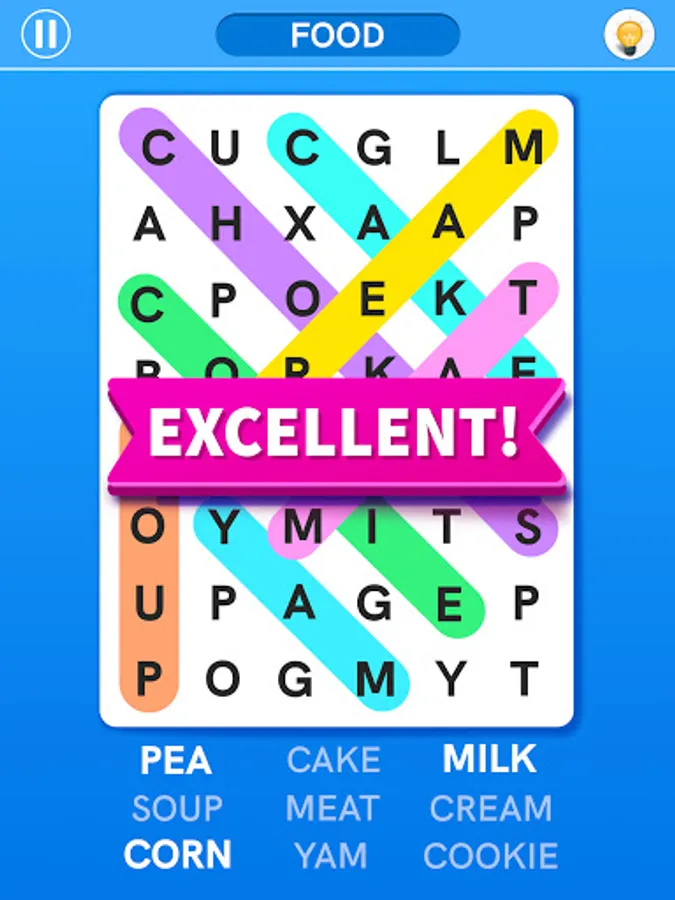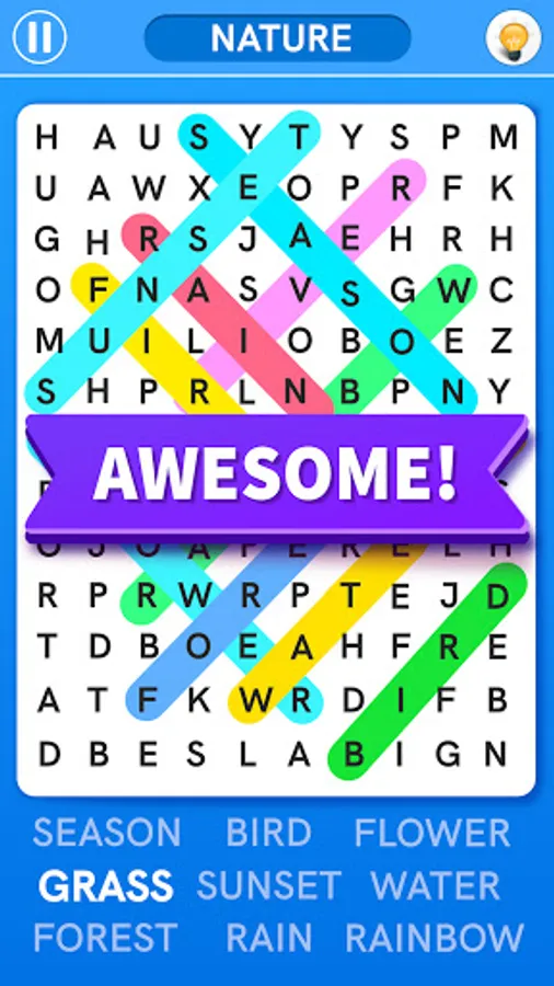 π You will fall in love with the easy user interface of this word find game.