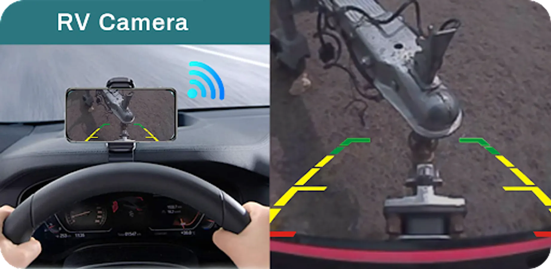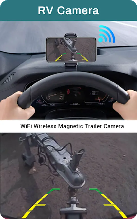 Easy hitch management with your mobile device, hook-up trailer boat. Download the RV Camera app to your smart phone or tablet and connect to the wireless backup camera via its WiFi hotspot. (Direct connection, no network access required).