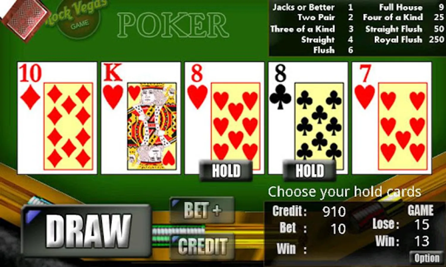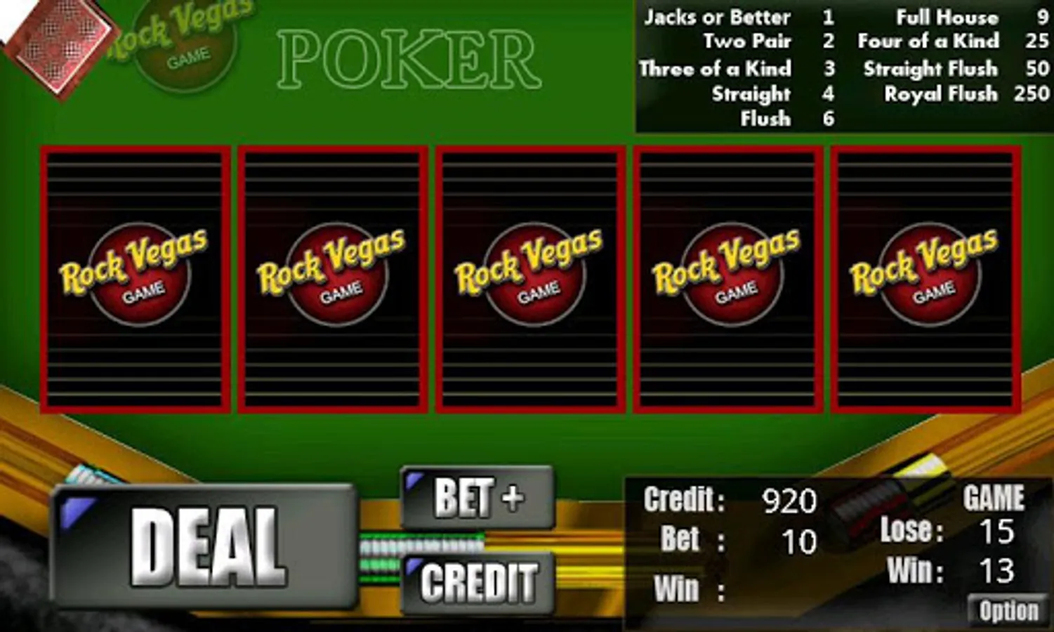 Rock Vegas Game Poker lets you play jacks or better for free. Betting as little or as much fake money as you want, and win big in Jacks or Better before you even hit the casino!