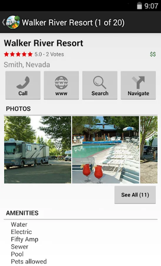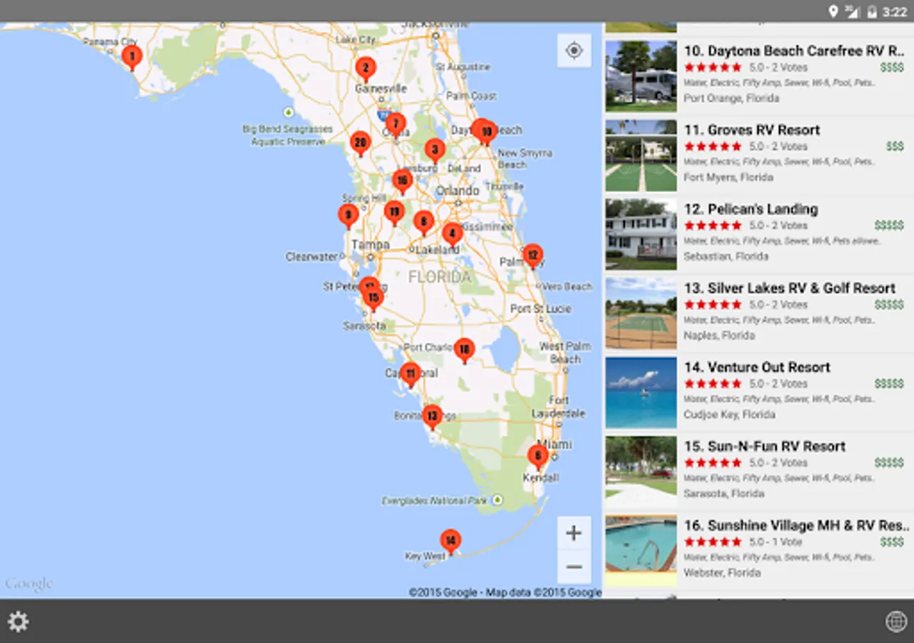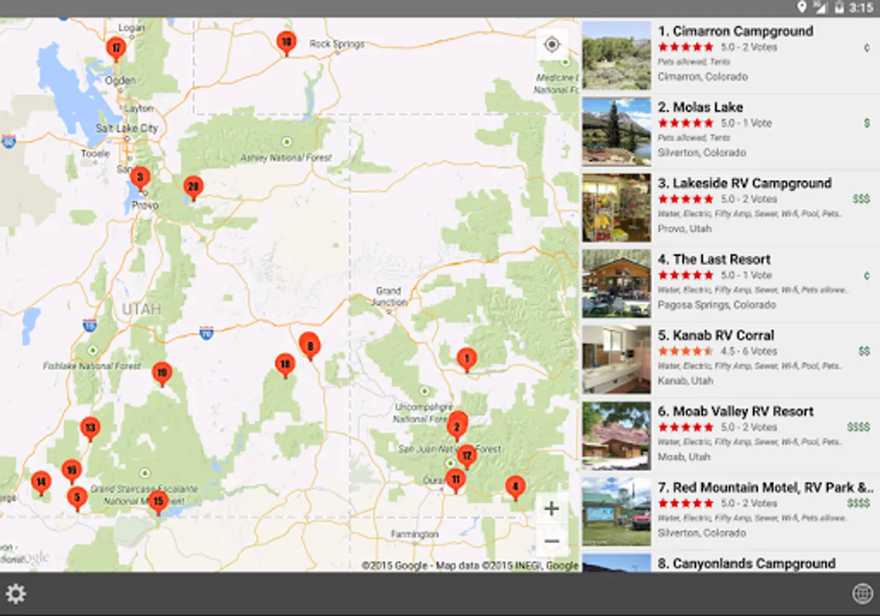This app was developed to help people find great RV Parks in North America (USA, Canada, Mexico). Completely FREE with NO ADS. Commercial RV parks are sorted by rating and can be viewed in list mode. If you zoom in far enough, you will see gas station, rest areas, stores, etc. Compared to similar applications, this app uses local database, so it works much faster and less dependent on internet, however internet is required to view reviews, maps and pictures.