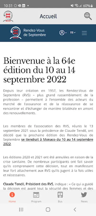 Find all the information and pages of the Rendez-vous de Septembre website adapted for mobile.
