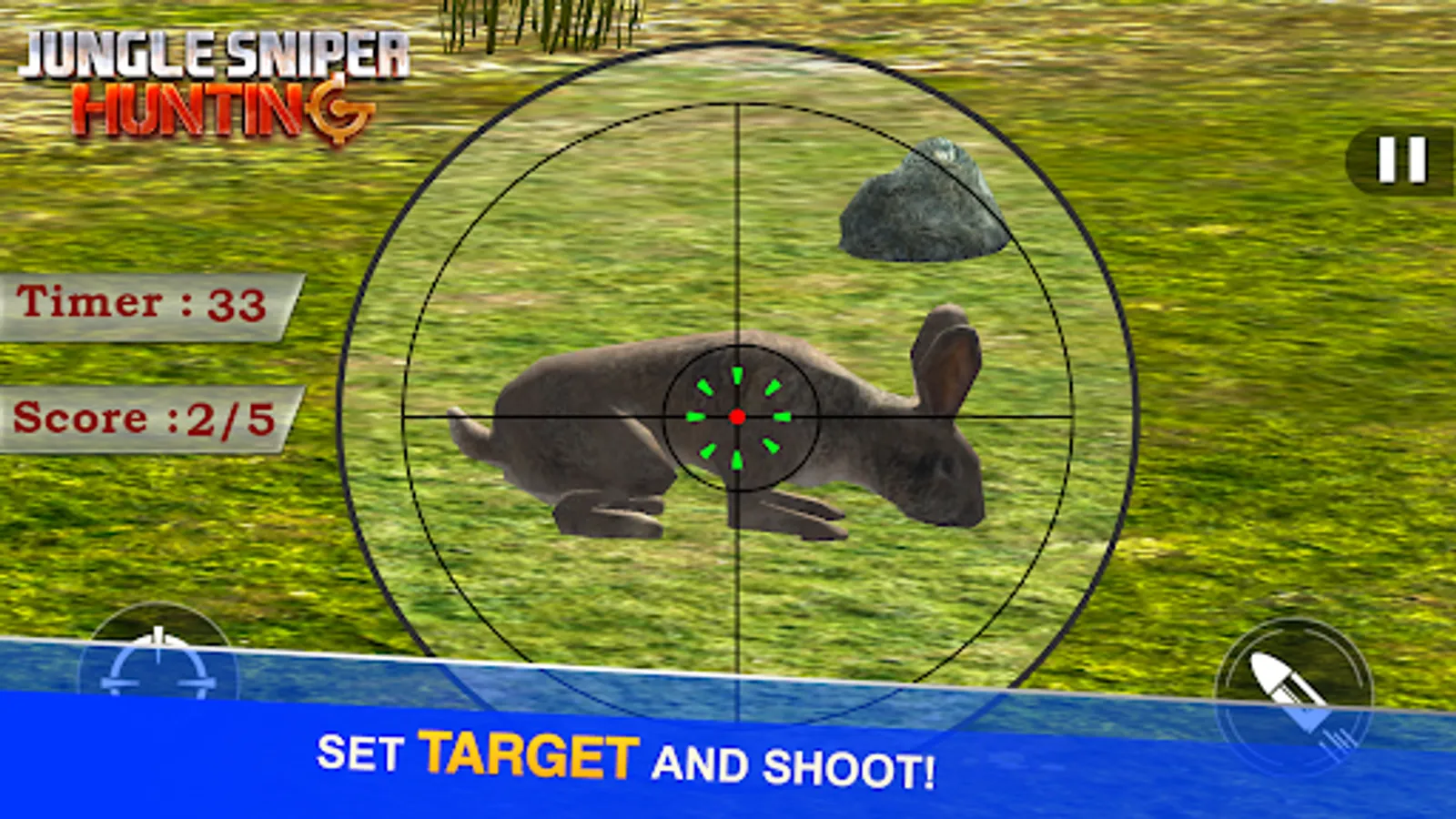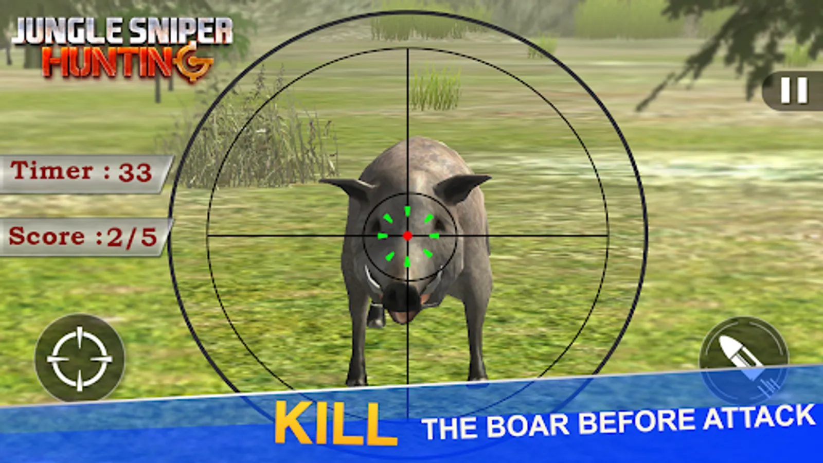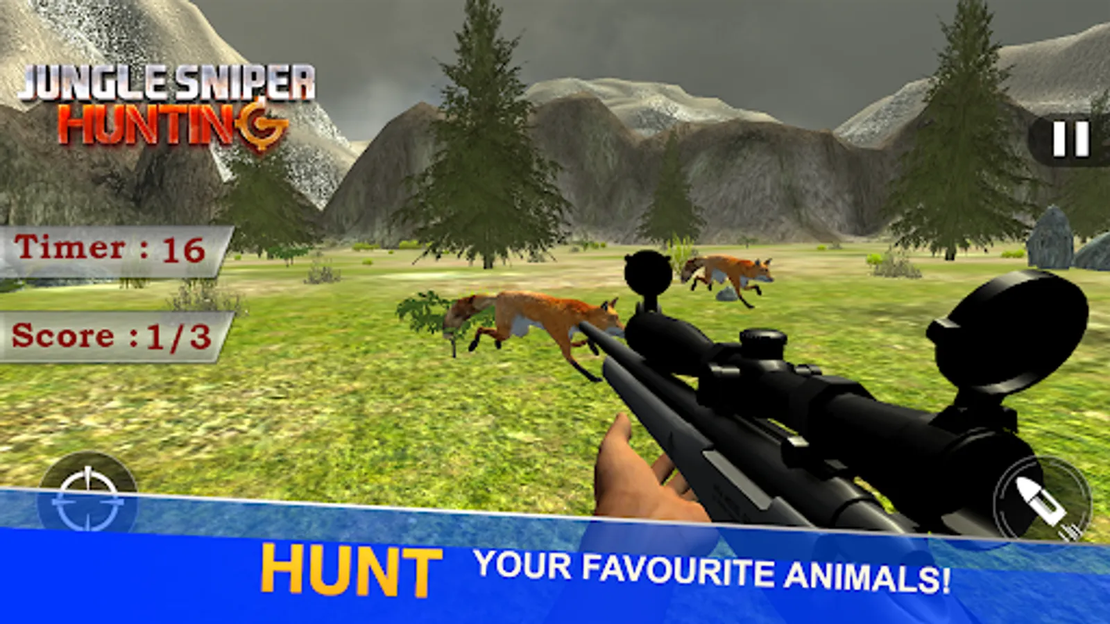 You love to hunt, and are entered in this dangerous jungle with your best sniper shooting gun. dangerous animals are out there, choose among deer, stag, bear, boar, pig, take the aim and shoot. You have 8 levels to play with each animal. never ending fun is here.