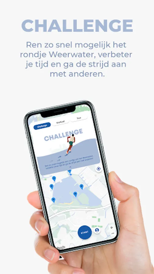 - Challenge: here you are challenged to run a lap around the Weerwater as quickly as possible. The app tracks your speed and you might end up at the top of the rankings.