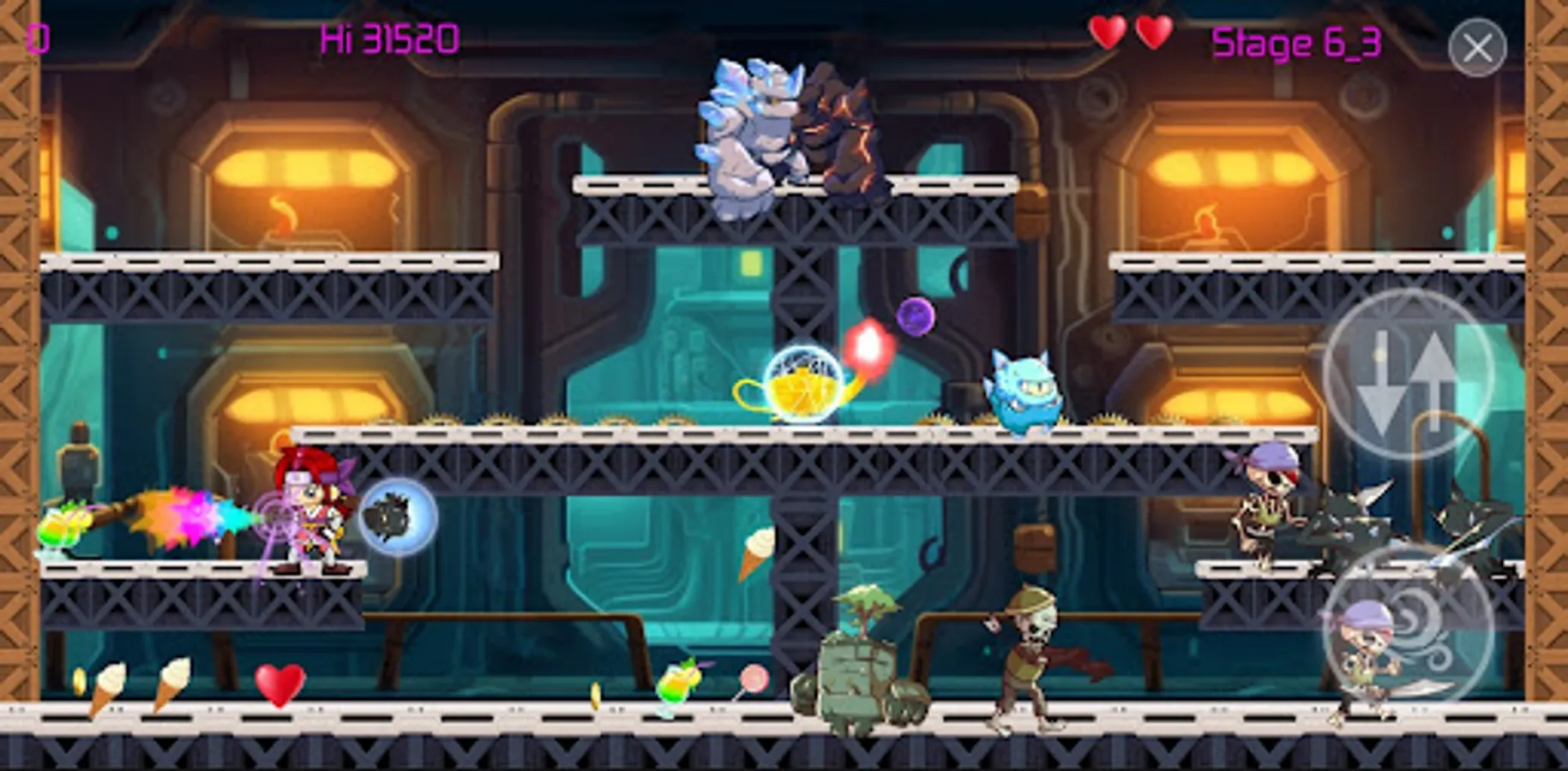 This is a retro arcade game where players assume the role of a ninja in a world filled with all kinds of monsters. In the game, players use ninjutsu to suck up monsters into magical balls and then throw them to hit other monsters for points. The more monsters sucked up, the longer the ball bounces. Additionally, players can use the ball's bounce to dodge enemy attacks. The game features colorful scenes and various types of monsters that players must challenge to improve their skills and game level. There are also different items and skills to help players pass levels. Experience the fun of classic arcade games with the quality graphics and sound effects of modern mobile games.